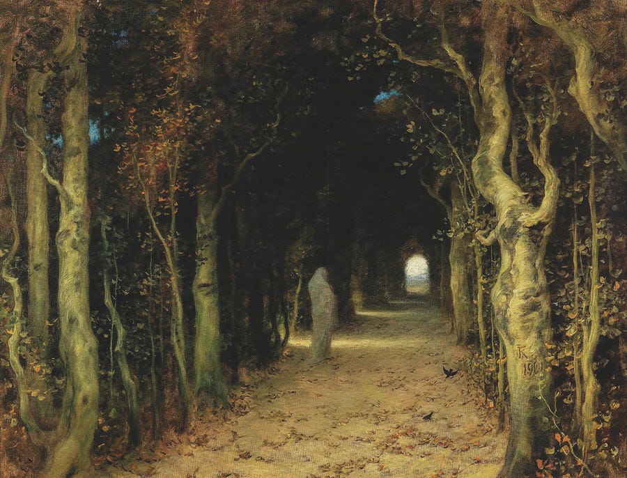 The Man Who Went Too Far may well be Benson’s masterpiece, however. Frank Halton, a one-time artist, finds rejuvenation in an ancient wood in the countryside. He gains youth in his appearance and spirit by communing with nature in the wilds shunned by the locals. While doing so, he hears spectral pipes playing somewhere off in the trees. For most of the story, he regales his friend Darcy with the wonders his re-connection to nature has rendered, but in the end, the darkness of the woods comes to claim him.
